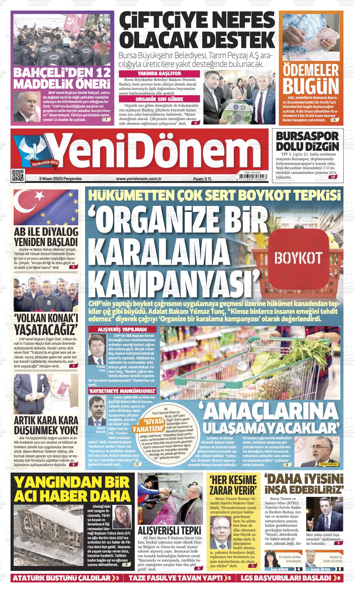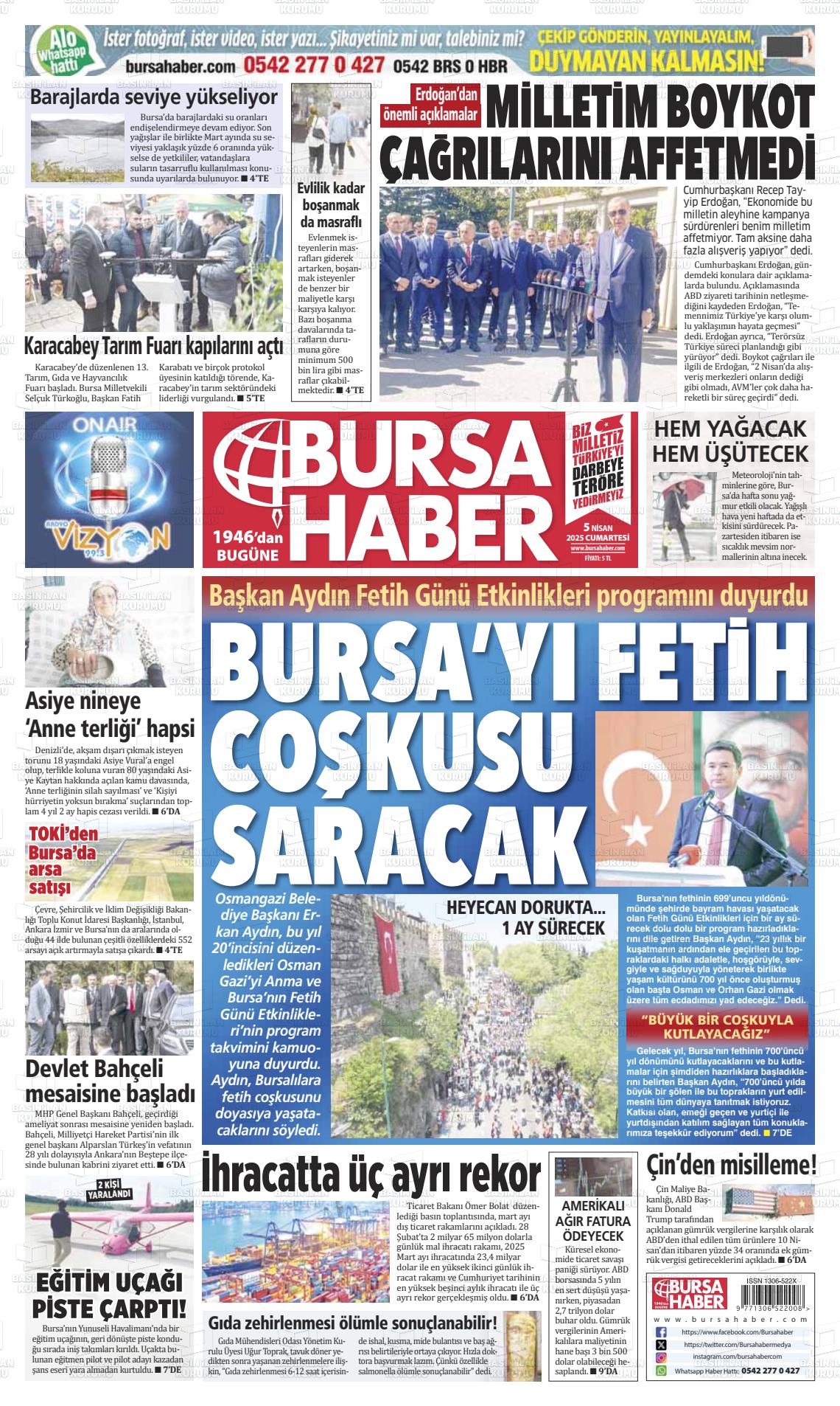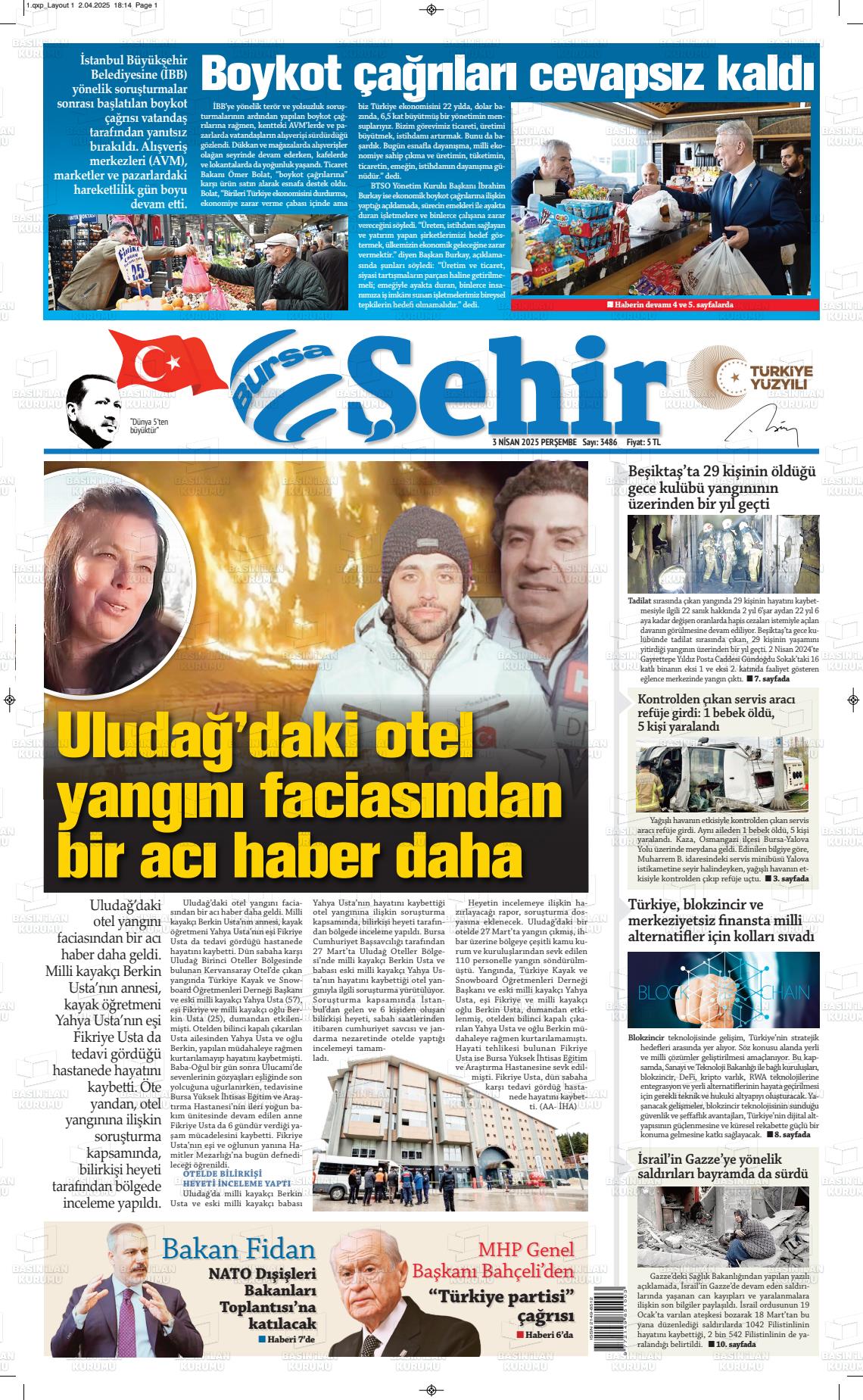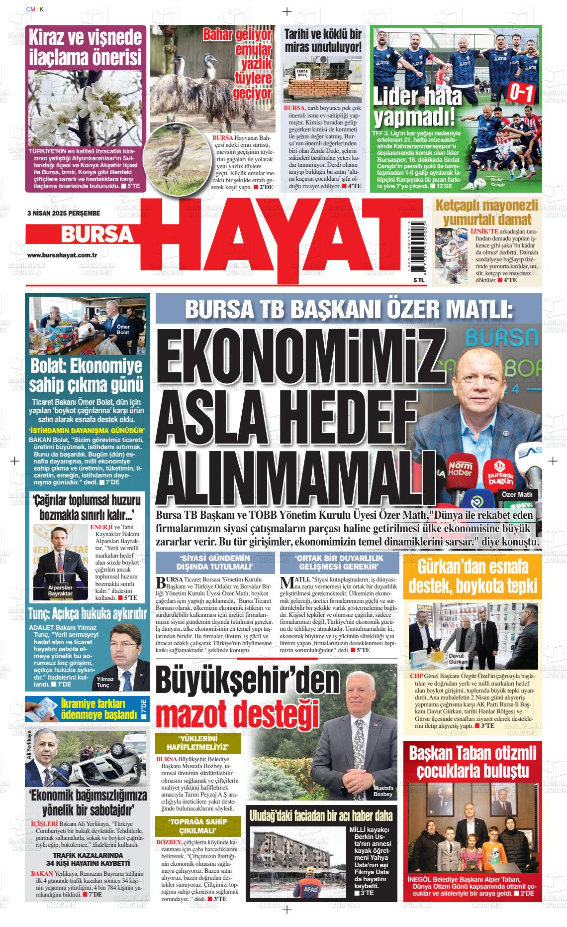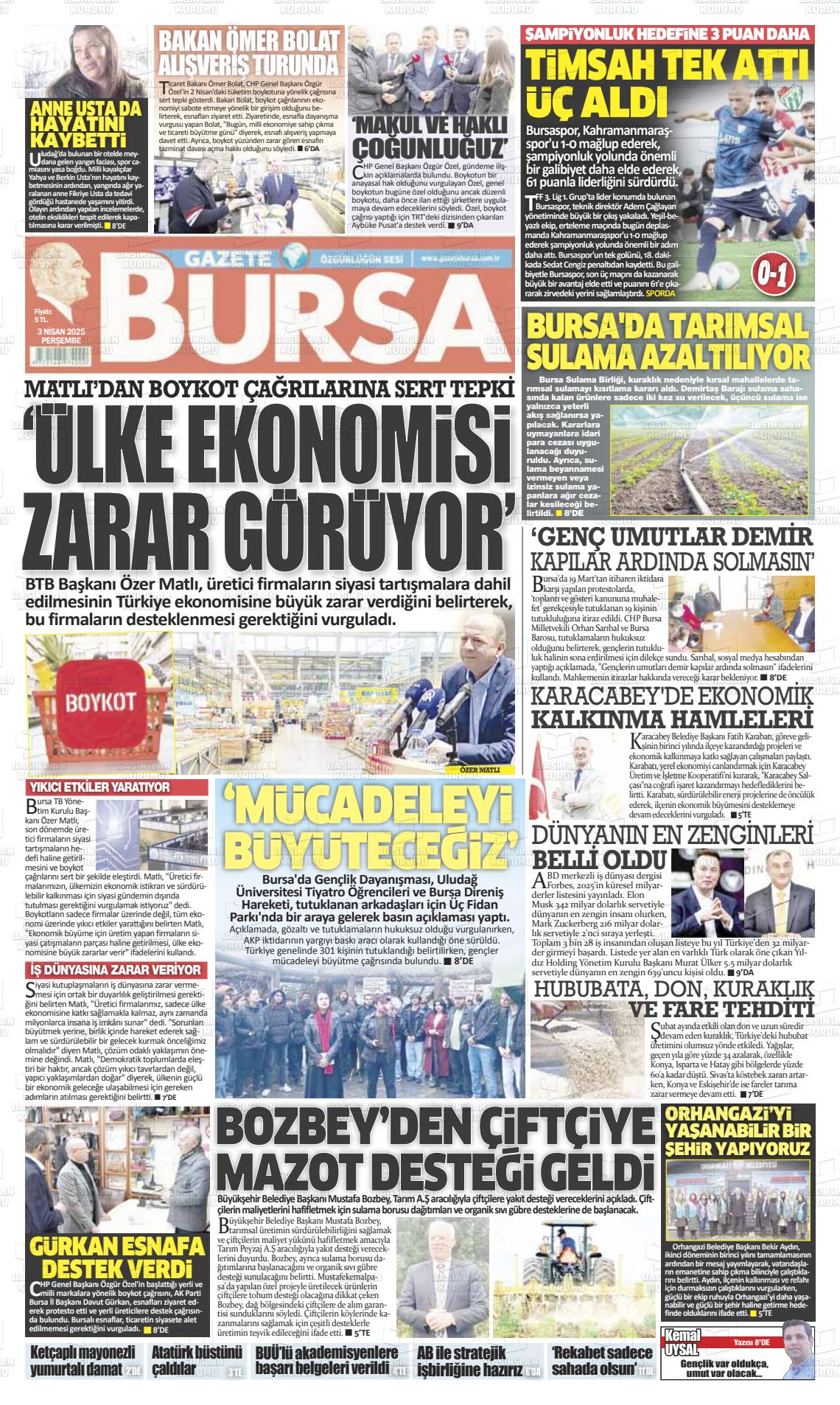 Bursa Yerel Gazeteleri 20 Ocak 2025, Pazartesi Günü Manşeti