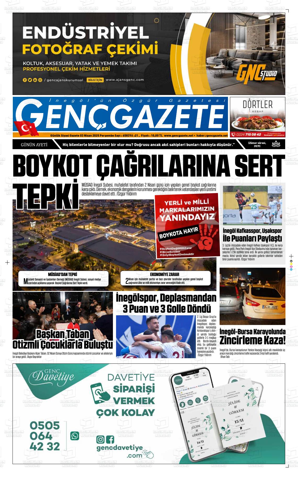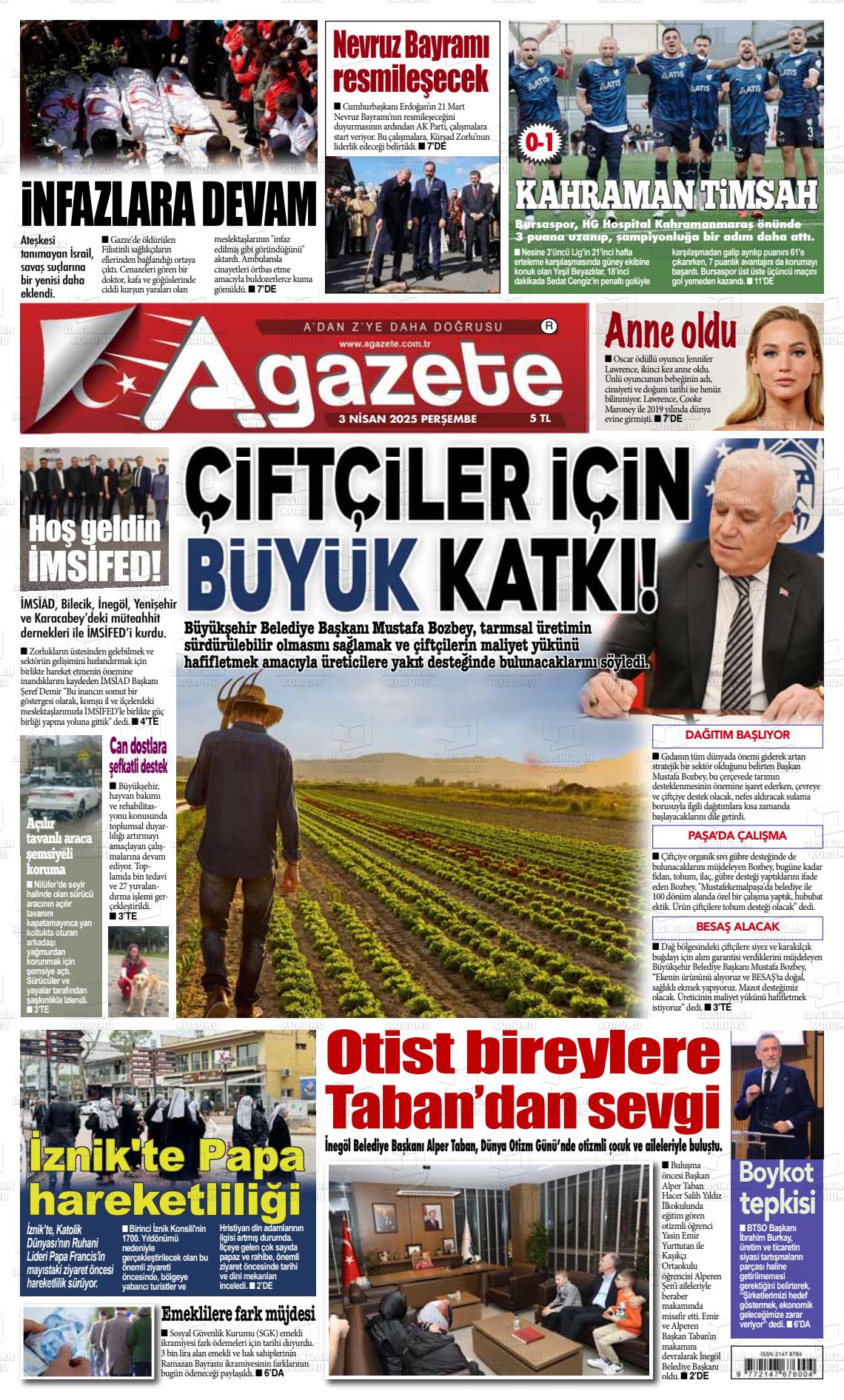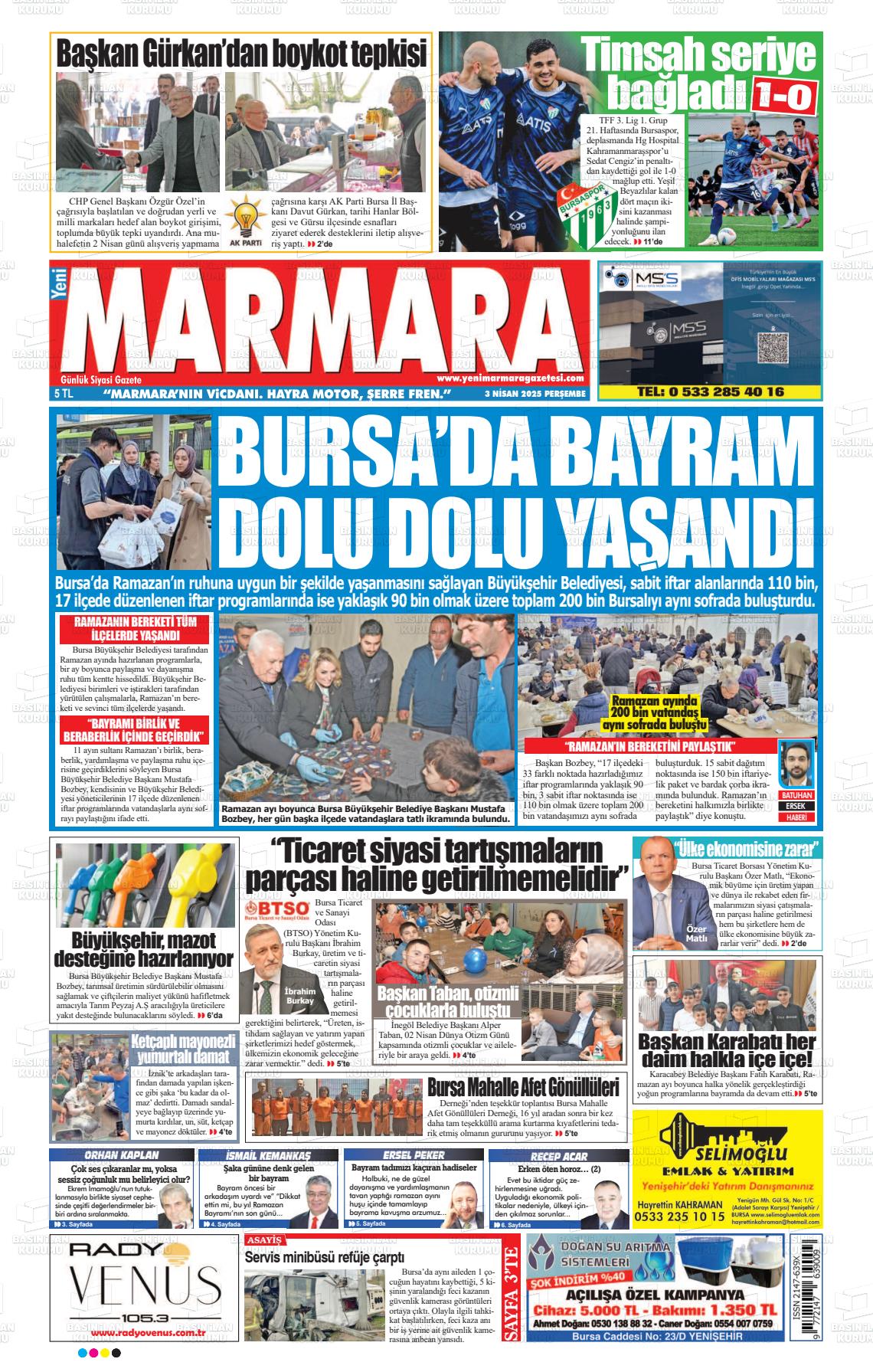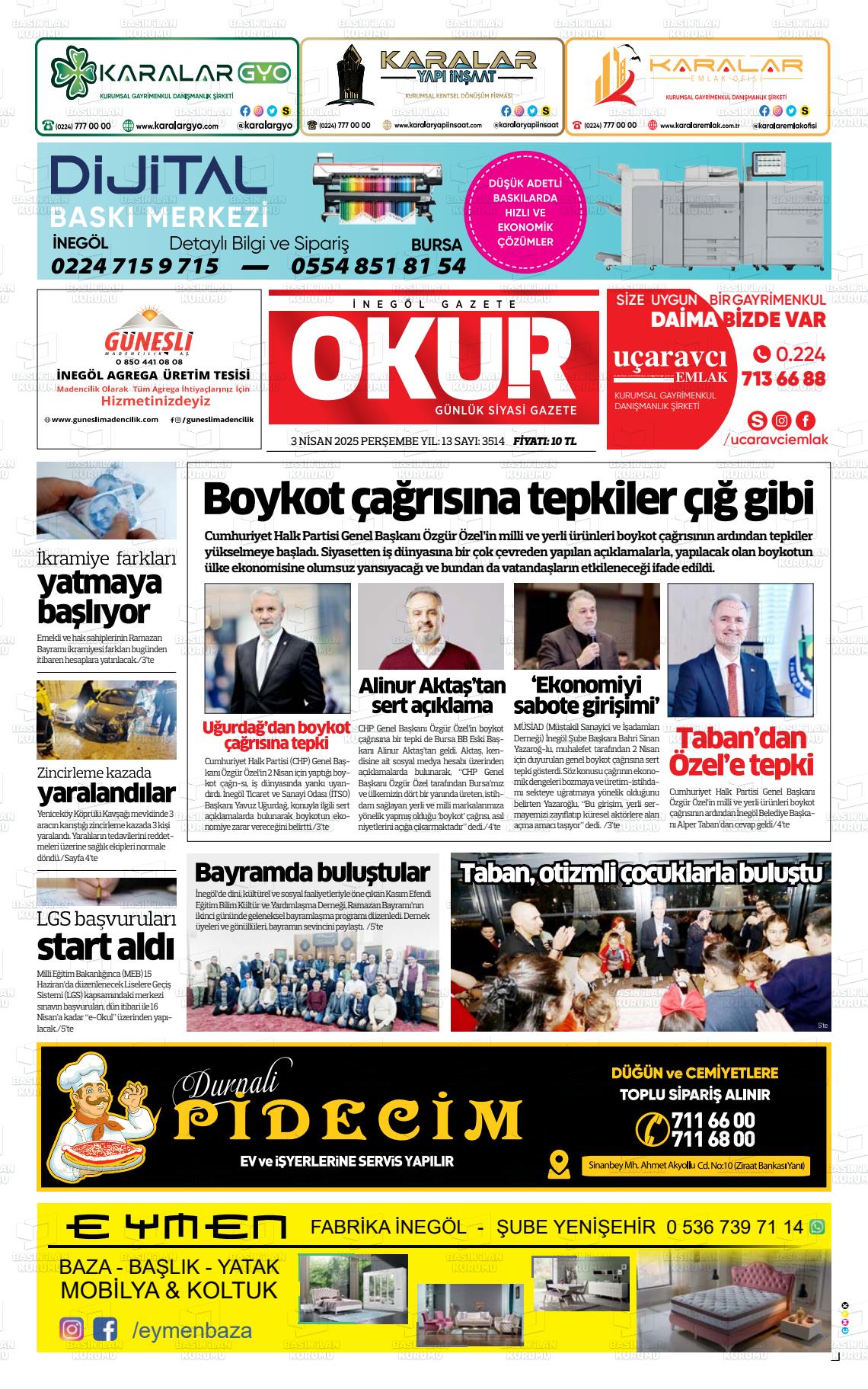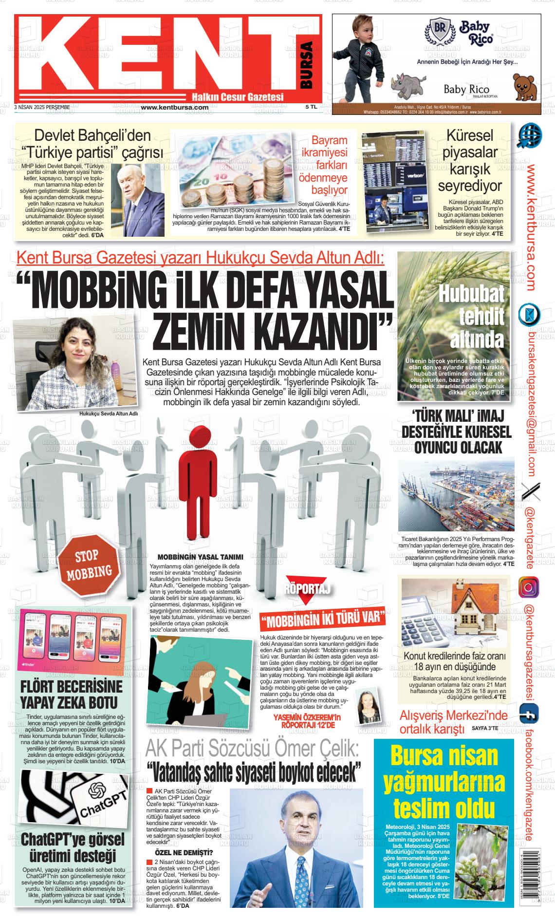 Bursa Yerel Gazeteleri 20 Ocak 2025, Pazartesi Günü Manşeti